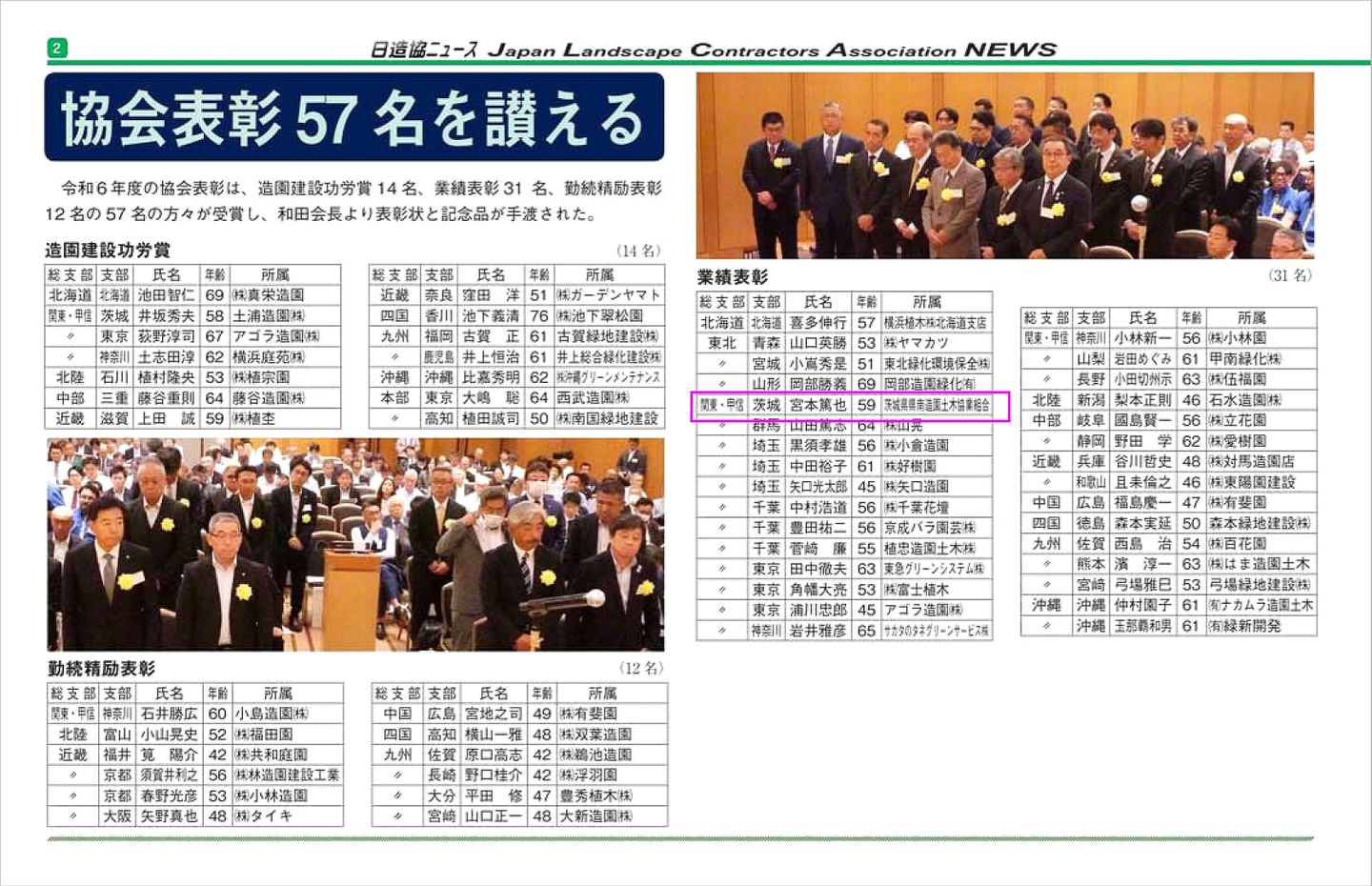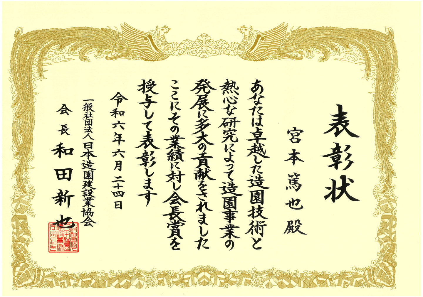 2024年6月24日(月)一般社団法人日本造園建設業協会より、業績に対し会長賞を受けました。