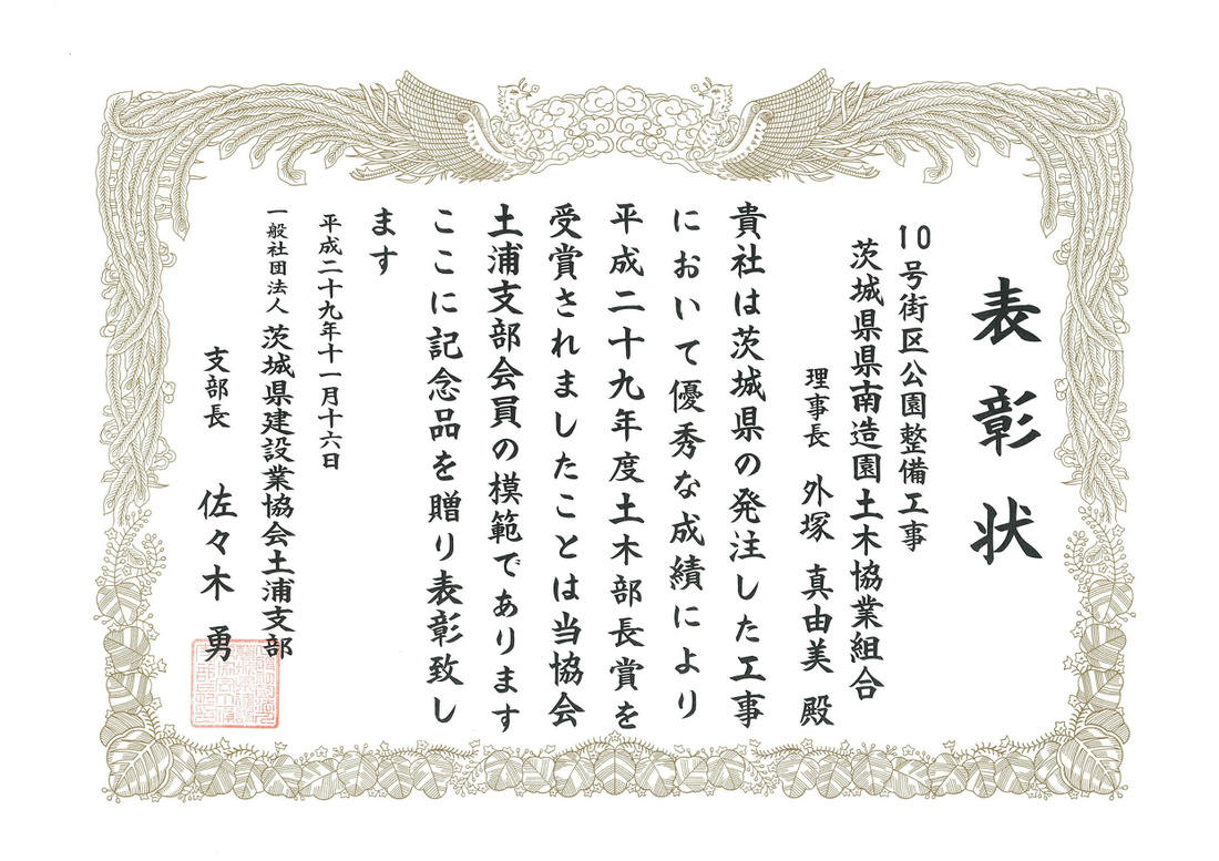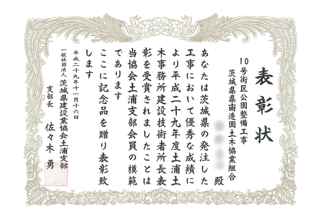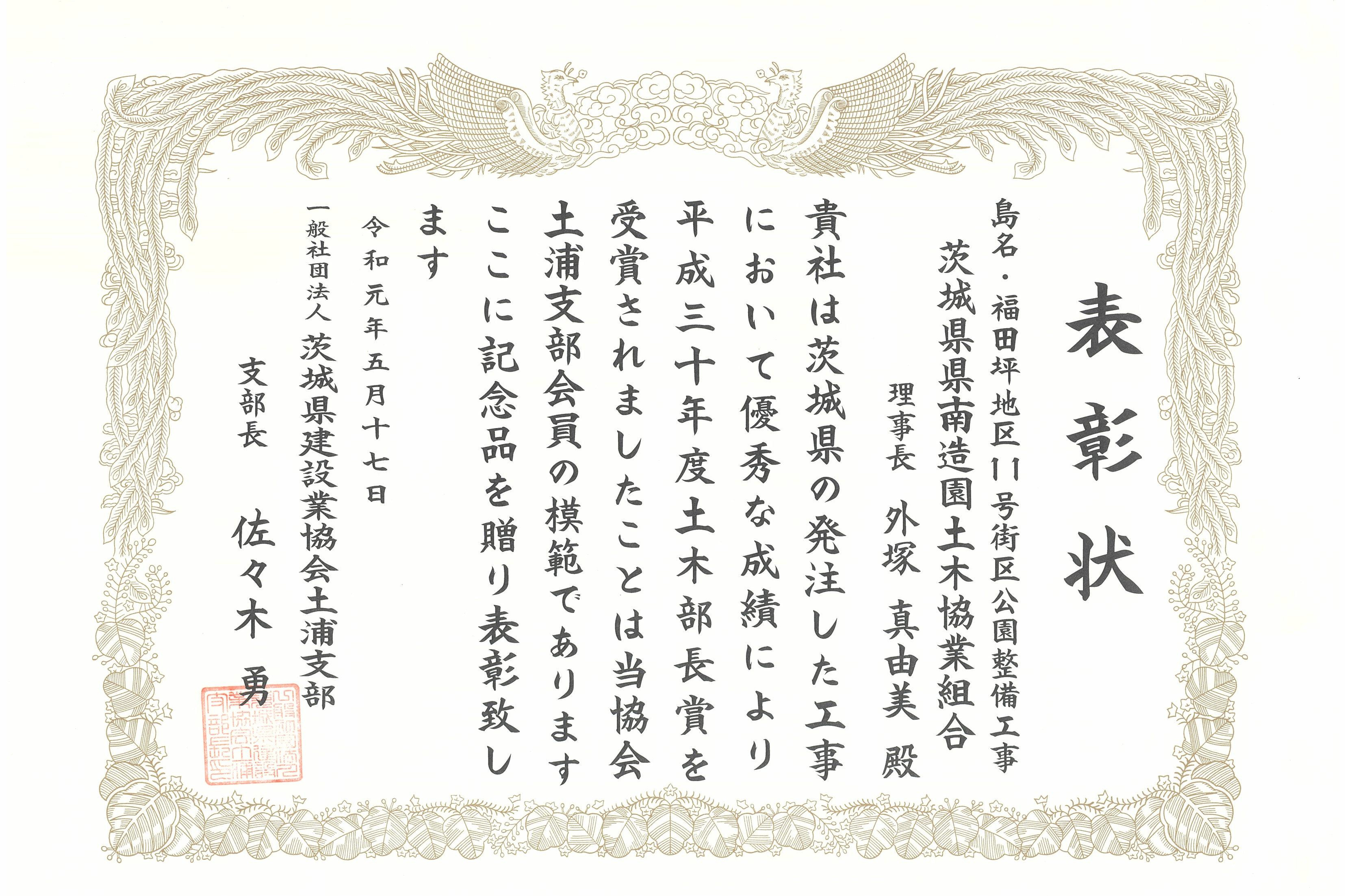2019年5月17日(金) 一般社団法人茨城県建設業協会土浦支部より、表彰を受けました。